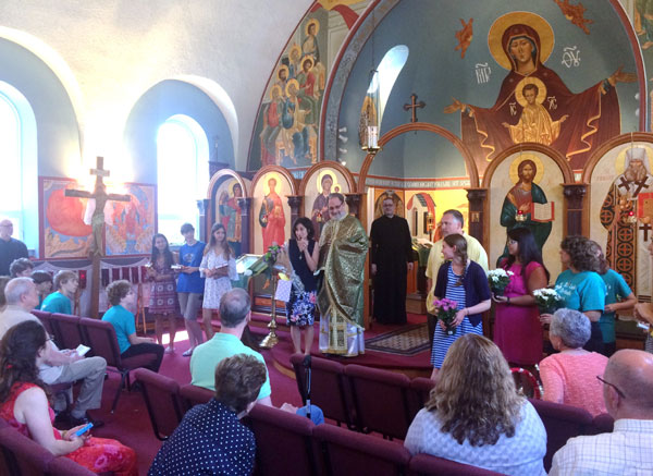 Fr. Paul began our visit with the story of Pentecost. He explained how the apostles were gathered together in the upper room, 50 days after the Resurrection of Christ, when suddenly there came a sound from heaven as of a rushing mighty wind, and a small flame appeared over the apostles heads, a sign that the Holy Spirit is with them.
